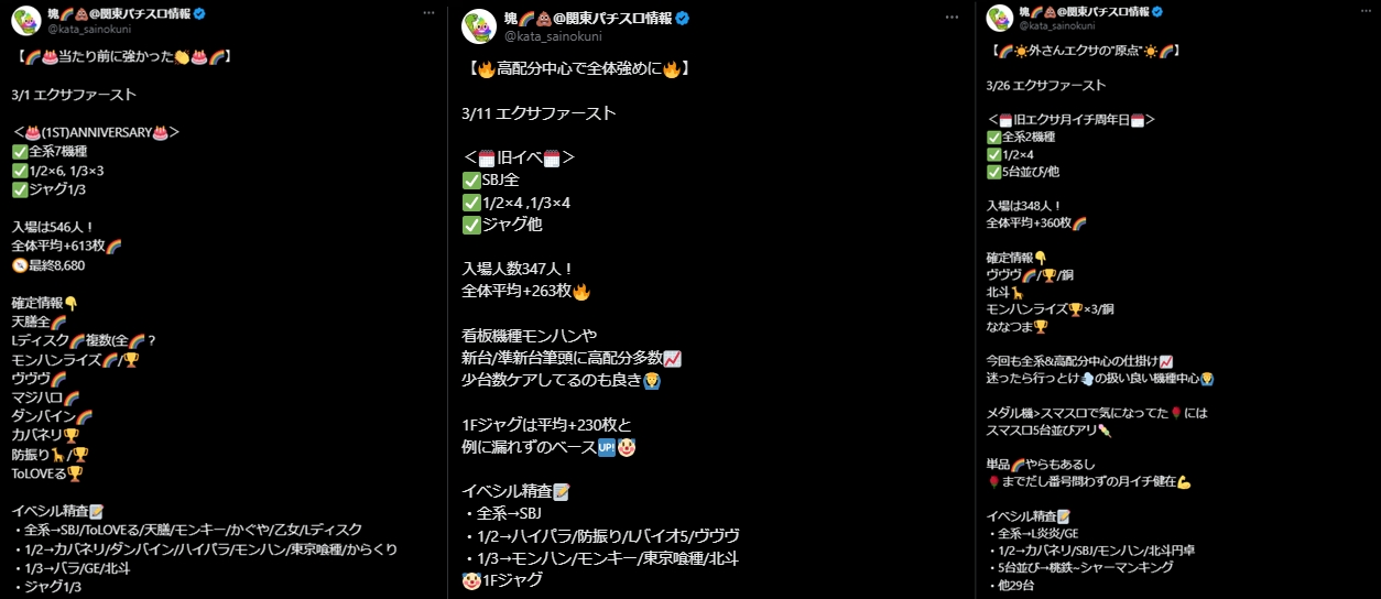 3/31(月) マルハン上里/マルハン深谷/マルハン川口/マルハン川越/マルハン所沢/マルハン鷲宮/マルハン清河寺/マルハン入間(1の付く日,合同,ニャンバーワン,まちゃみ巡回)