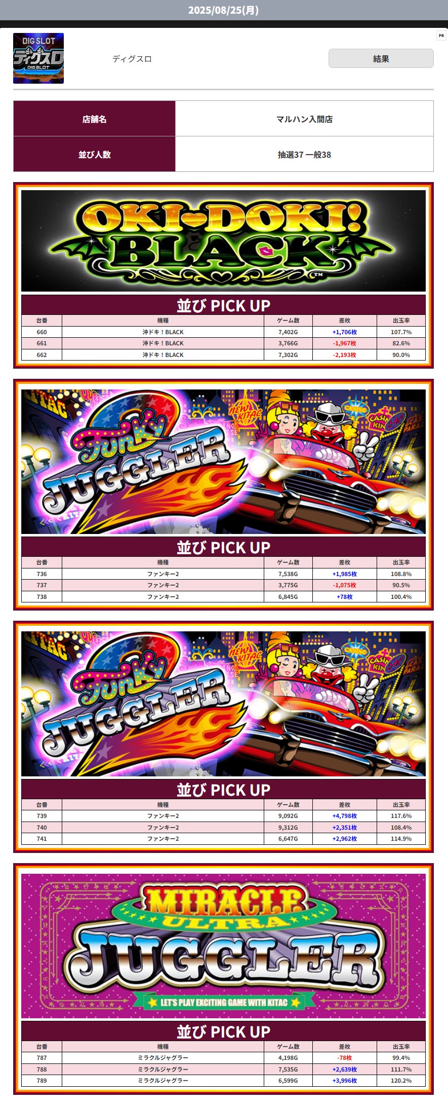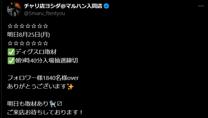 8/25(月) マルハン入間(5の付く日,週末,ディグスロ)